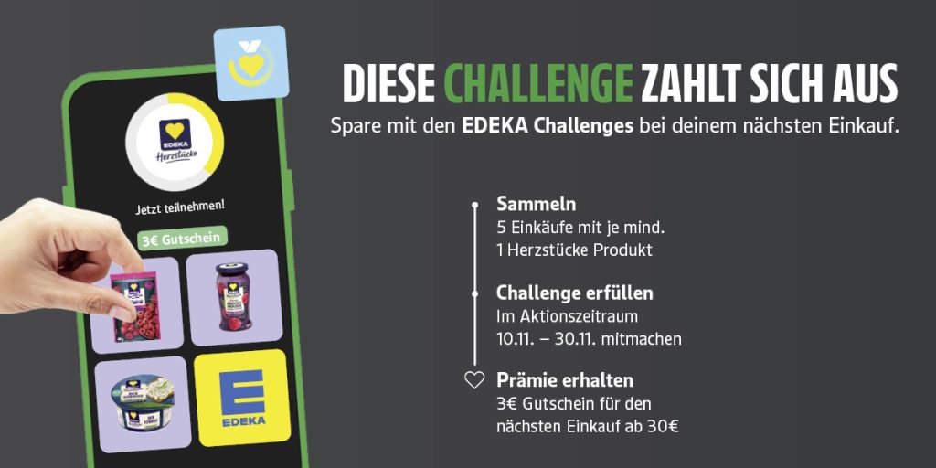 Jetzt bei 5 Einkäufen je einen Herzstücke-Artikel kaufen und mit der EDEKA App bezahlen. Schon sicherst du dir deinen 3€ Gutschein!